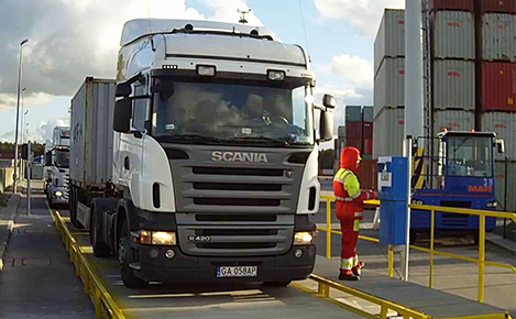 Podczas wjazdu na zakład na bramie wjazdowej kierowca podaje dane dotyczące pojazdu oraz przewożonego kontenera. Po dokonaniu awizacji pojazd jest wpuszczany na teren zakładu.