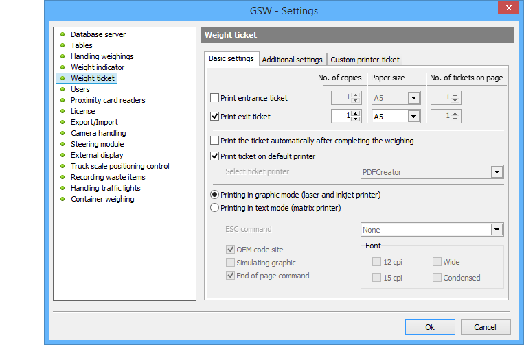 GSW程序允许以图形形式 (激光和喷墨打印机) 和文本形式(点阵打印机)打印称重票