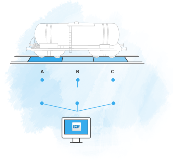 复合称重 当有必要在短尺度称量长车和轨道车时,这种类型的称重是很有用的。 在称量车辆/轨道车移动时,特定的重量总和构成车辆的重量。 |