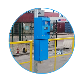Bei der Einfahrt auf das Betriebsgelände gibt der Fahrer am Tor die Identifizierungsdaten des Fahrzeugs und des Containers ein. Nach der Avisierung wird das Fahrzeug auf das Betriebsgelände reingelassen.