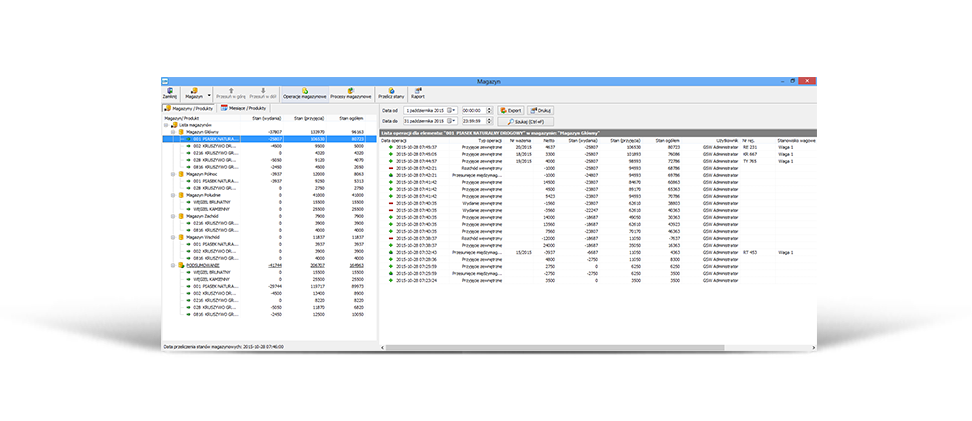 Das GSW-Programm ermöglicht es, Wägungen durchzuführen und gleichzeitig das Lager zu verwalten. Abhängig von der Art der durchgeführten Wägung kann der gewogene Artikel gleichzeitig im Lager aufgenommen, von Lager ausgegeben oder zwischen bestimmten Lagern umgebucht werden. Die ausgeführten Operationen sind in der Liste von Operationen des gegebenen Lagers ersichtlich. Auf der Liste der Wägungen ist hingegen lediglich die Bezeichnung des Lagers, für den die Wägung durchgeführt wurde und dem die Waren zugeordnet wurden, sichtbar.