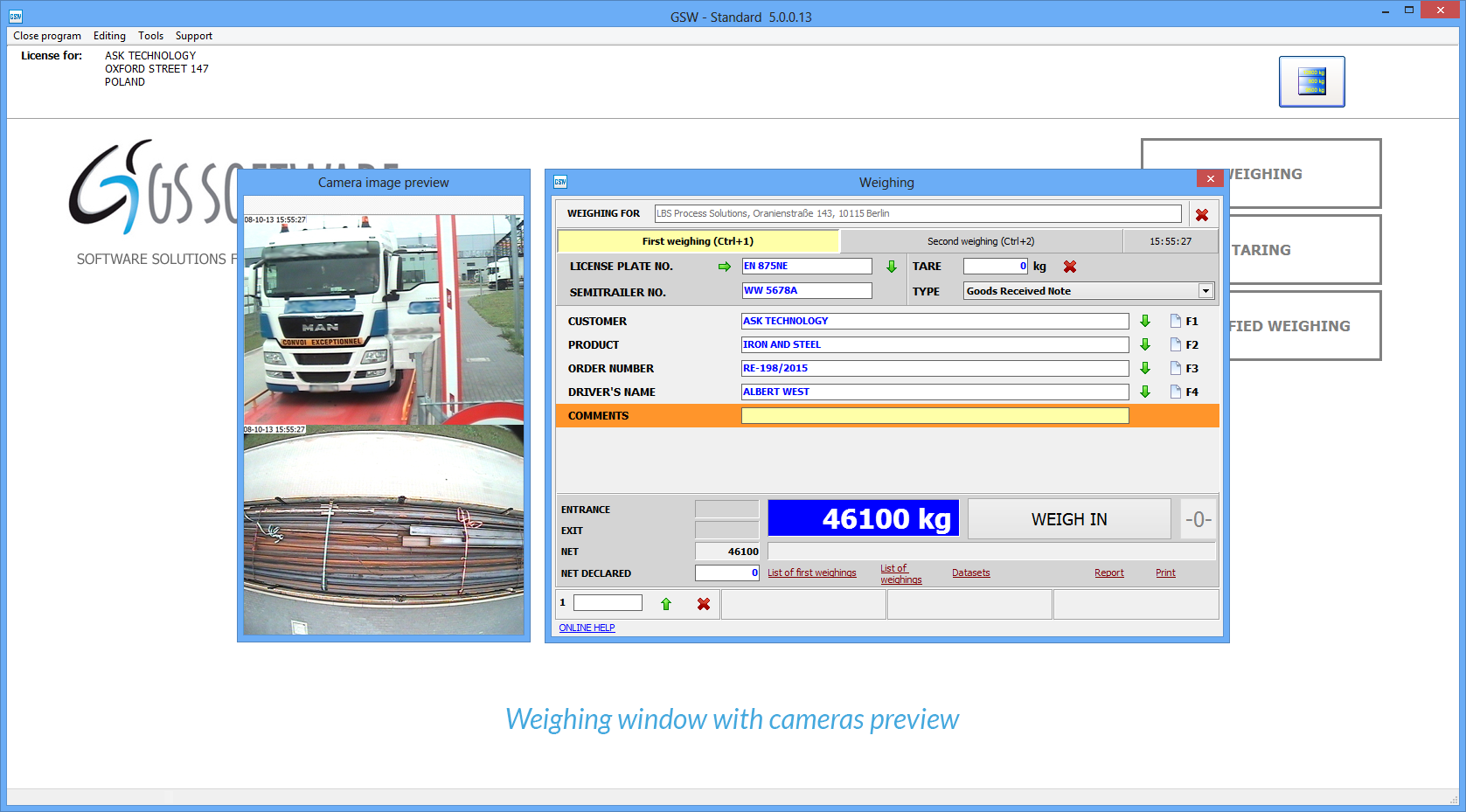 GSW ist eine der besten verfügbaren Softwareanwendungen für die Wägungsausführung auf den Fahrzeug- und Gleiswaagen.