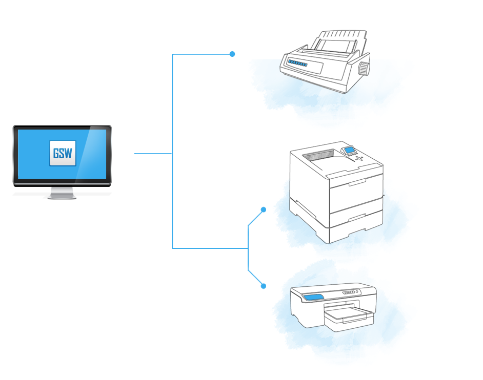 Reports can be printed out in a graphics mode (via ink and laser printers) and a text mode (dot-matrix printers).