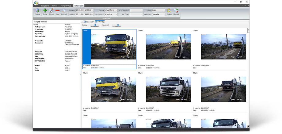 Oprogramowanie GSW Remote Viewer umożliwia przeglądanie zdjęć wykonanych podczas ważenia, wraz z szczegółowymi danymi.