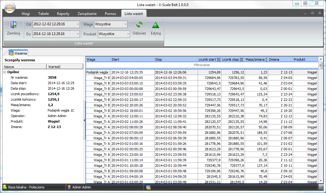 Oprogramowanie do obsługi wag taśmociągowych