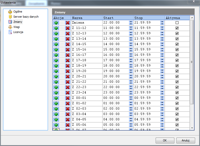 Program X-Scale Belt zlicza przepływającą przez wagę masę w cyklach zmianowych. Zmiany te (przedziały czasowe) można dowolnie konfigurować.